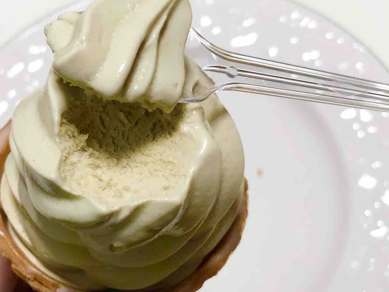 ピスタチオのカップアイスは見かけますが、ワッフルコーンは見かけることがなかったため、ワッフルコーン好きの私には嬉しい♩